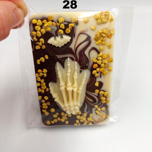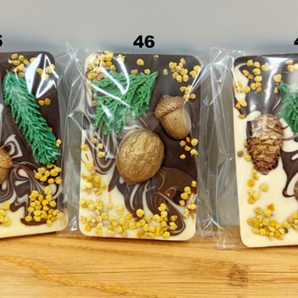 - 55% Beļģu tumšā šokolāde (kakao saturs vismaz 55%, cukurs, kakao sviests, emulgators-sojas lecitīns, dabīgs vaniļas aromatizētājs. Var saturēt lipekļa, zemesriekstu, riekstu, piena un sezamas daļiņas).