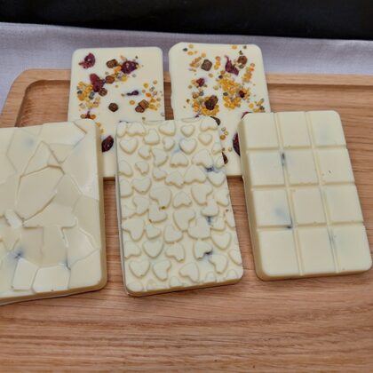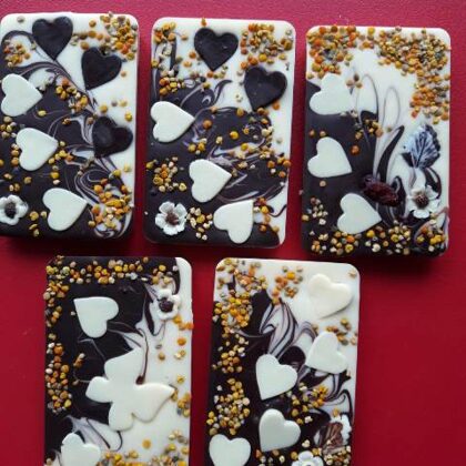Tumšās (55%) vai baltās šokolādes tāfelītes ir apbērtas ar ziedputekšņiem, bišu maizi, dzērveni un riekstiem. Katrai tāfelītei pa vidu iegremdētas dzērvenes un bišu maize.