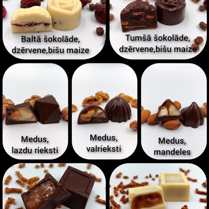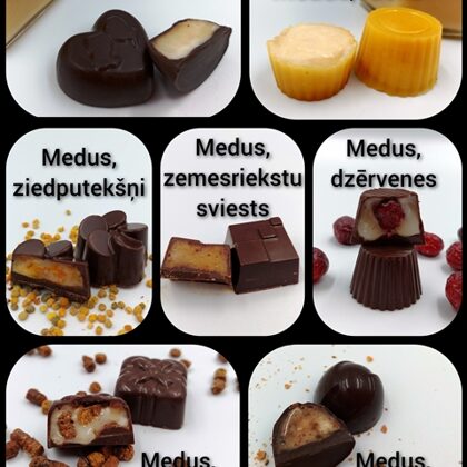 - Pildītās konfektes ar bišu produktiem šokolādē