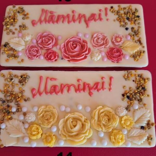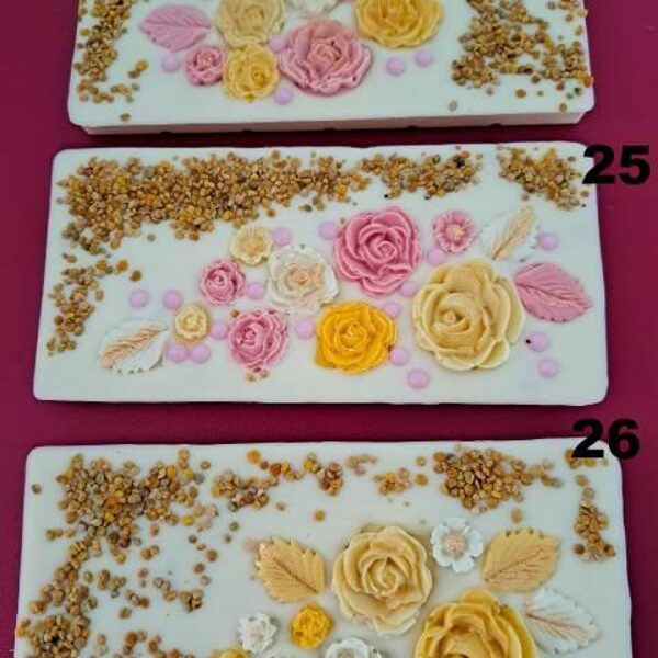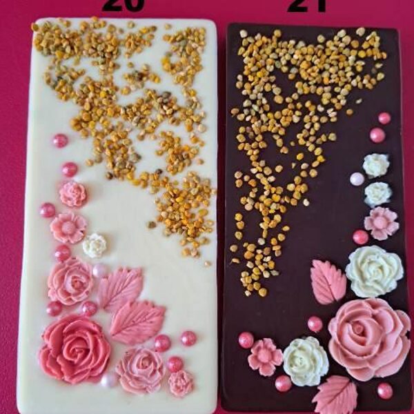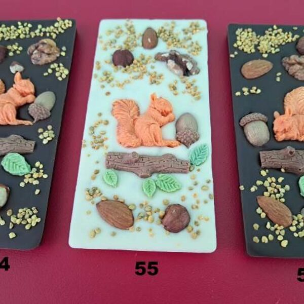 Tumšās (55%) vai baltās šokolādes tāfelītes ir apbērtas ar ziedputekšņiem, bišu maizi, dzērveni un riekstiem. Katrai tāfelītei pa vidu iegremdētas dzērvenes un bišu maize.