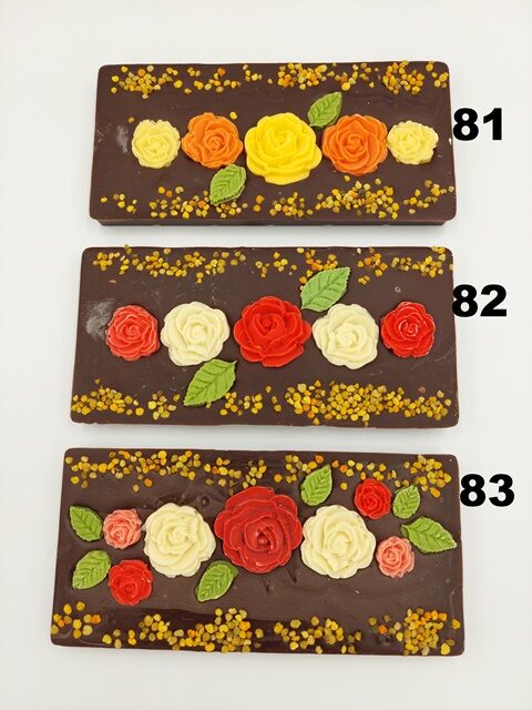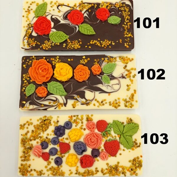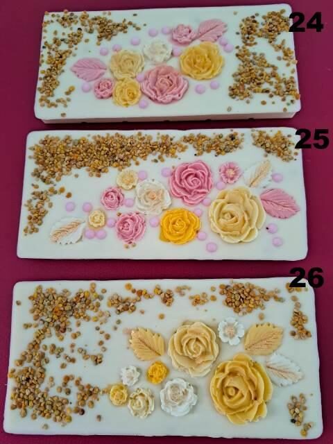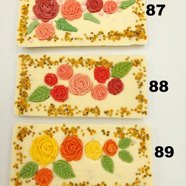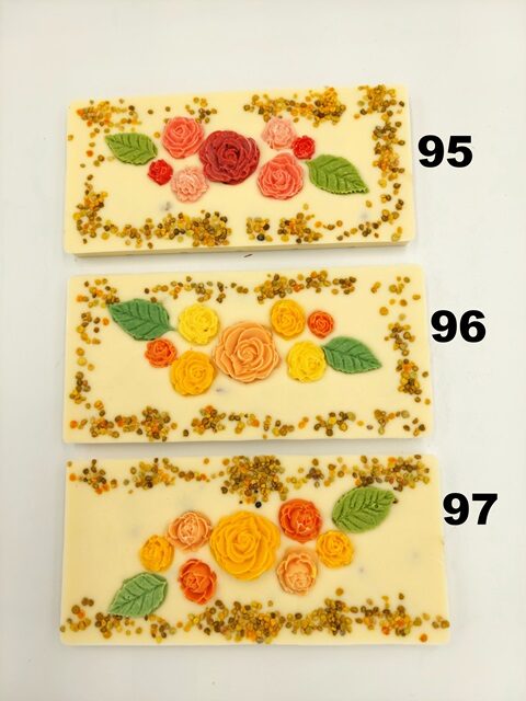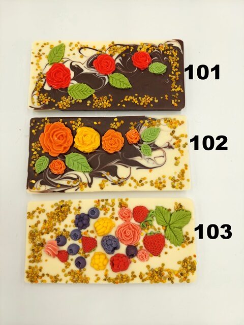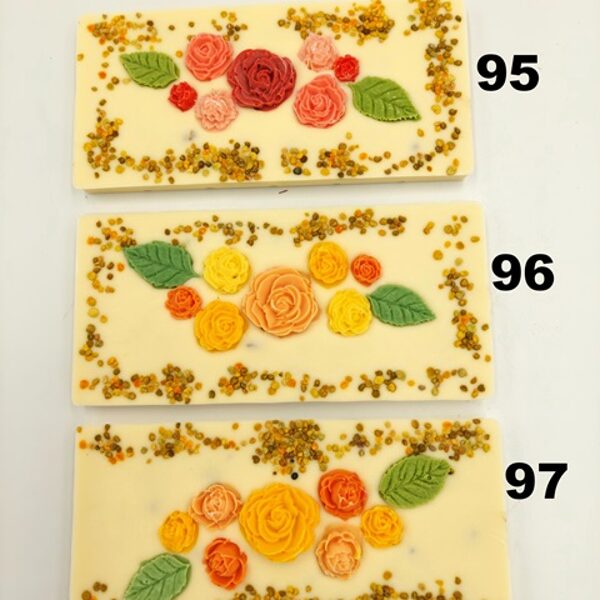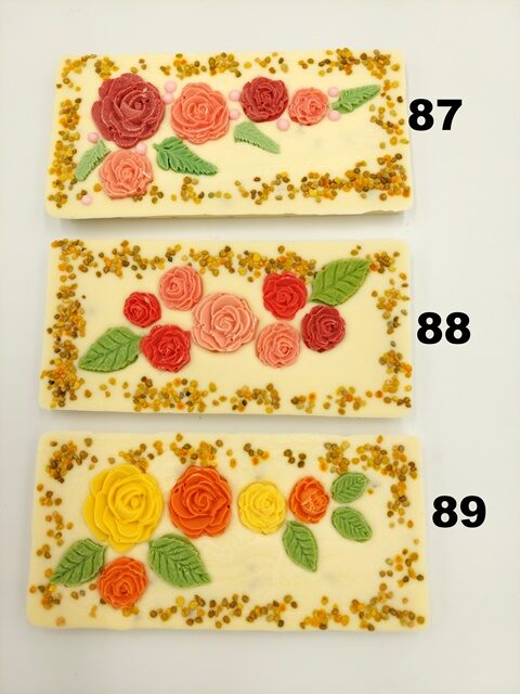 - Krāsvielas: (Dzeltenā pārtikas krāsviela E102, rozā krāsviela E120, ziliā krāsviela E133) Ir iespēja zaķīšus un ziediņus pasūtīt bez krāsvielām.