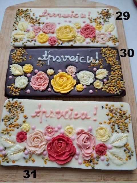 Šokolādes svars 120gr un ir ietīta caurspīdīgā plastmasas maisiņā.