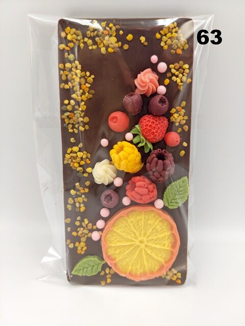 - 55% Beļģu tumšā šokolāde (kakao saturs vismaz 55%, cukurs, kakao sviests, emulgators-sojas lecitīns, dabīgs vaniļas aromatizētājs. Var saturēt lipekļa, zemesriekstu, riekstu, piena un sezamas daļiņas).