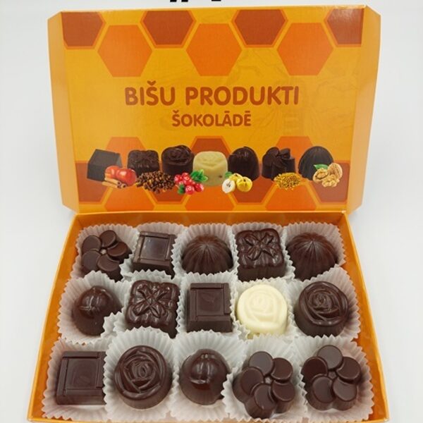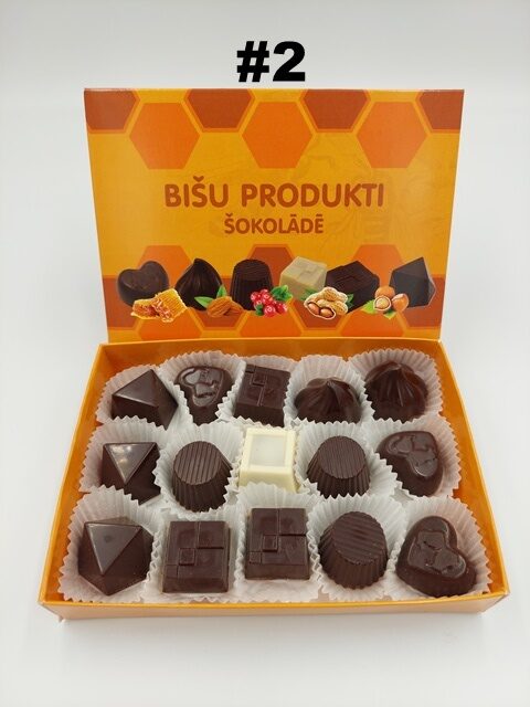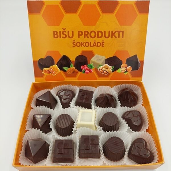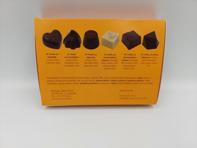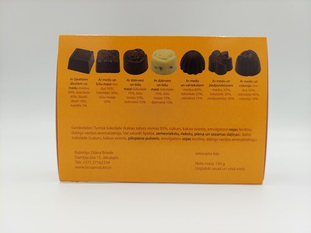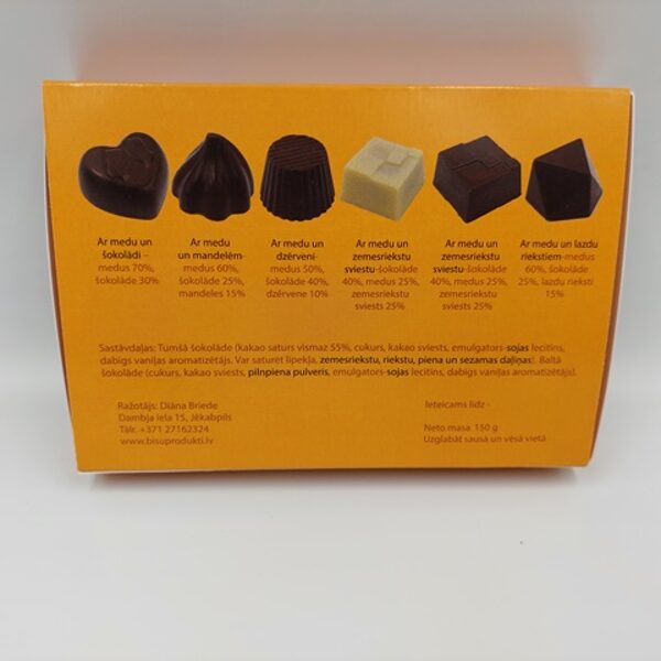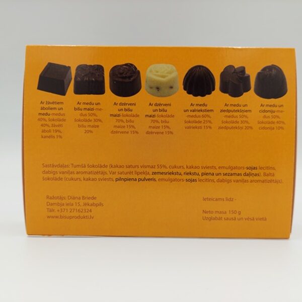 Kārbā ietilpst 15gb konfektes kuru kopējais svars 150gr.