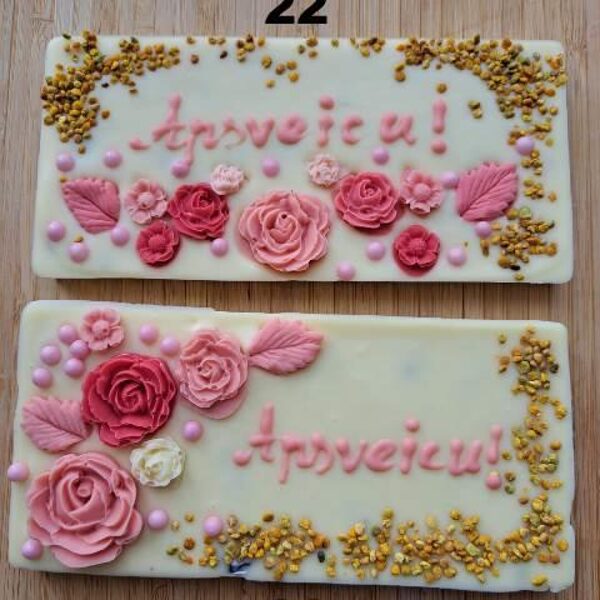 Šokolādes svars 120gr un ir ietīta caurspīdīgā plastmasas maisiņā.