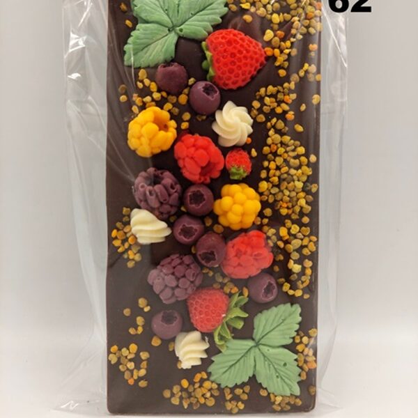 - 55% Beļģu tumšā šokolāde (kakao saturs vismaz 55%, cukurs, kakao sviests, emulgators-sojas lecitīns, dabīgs vaniļas aromatizētājs. Var saturēt lipekļa, zemesriekstu, riekstu, piena un sezamas daļiņas).
